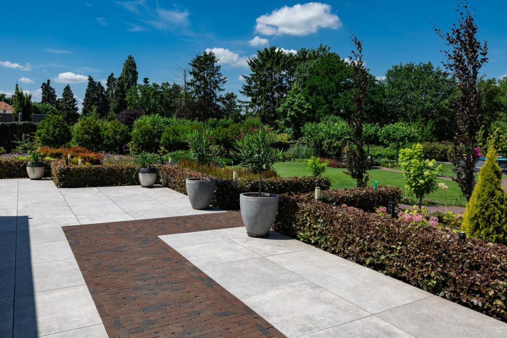 Keramische tegels worden steeds populairder, niet geheel onterecht: ze zijn bestand tegen alle weersomstandigheden, verkleuren amper, zijn eenvoudig schoon te houden en bijna niet meer te onderscheiden van bijvoorbeeld natuursteen. De keuze in keramische tegels is immens groot; van beton- of houtlook tot natuursteen en van standaard 60×60 tot imposante formaten zoals 120×120. Een keramisch terras op de juiste plek levert enorm veel comfort en stijl op in een tuin.